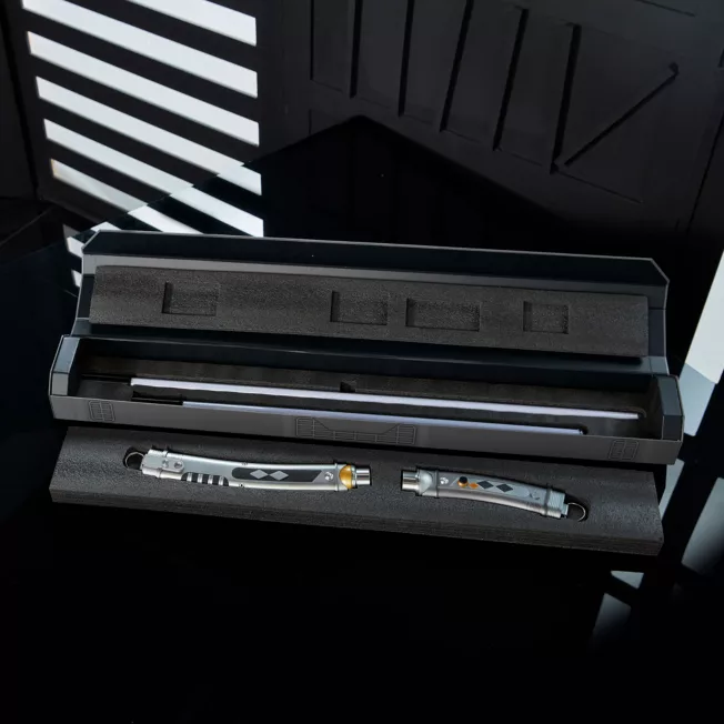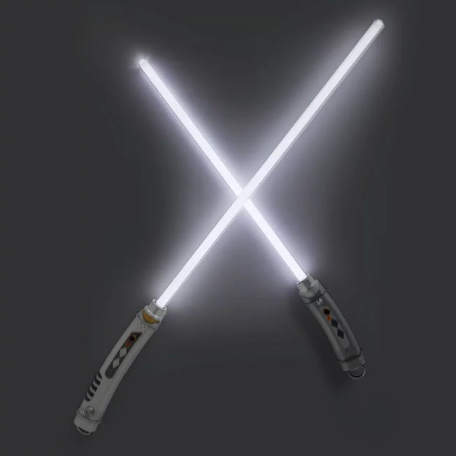 Feel at one with the Force with this pair of Ahoska Tano Legacy LIGHTSABERS. Ahsoka, former Padawan to Anakin Skywalker and a veteran in the battle of the Clone Wars, is known for her strong leadership and skill. This detailed set of reproductions features a Single-Bladed LIGHTSABER and Shoto Saber, with their distinctive curved hilts and white blades, and includes impact sensors and unique impact sound effects.