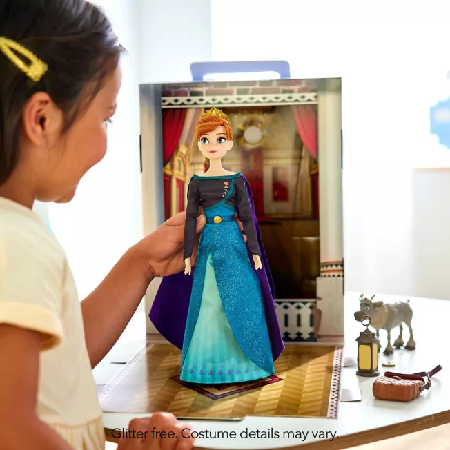 “For the first time in forever, nothing’s in my way,” said Anna. For the Disney Story Doll assortment, our beloved Classic Dolls are enhanced by additional clothing and accessories to more fully play out the character’s story. Recreate Disney’s Frozen films or imagine a brand new adventure! The plastic free, reusable, and recyclable packaging folds out into a play area stage, and features a colouring and activity sheet in back. Frozen‘s Anna wears her glitter-free royal outfit with decorative rosemaling design, shimmering top skirt, flowing cape, and tiara, and comes with a baby Sven figure.