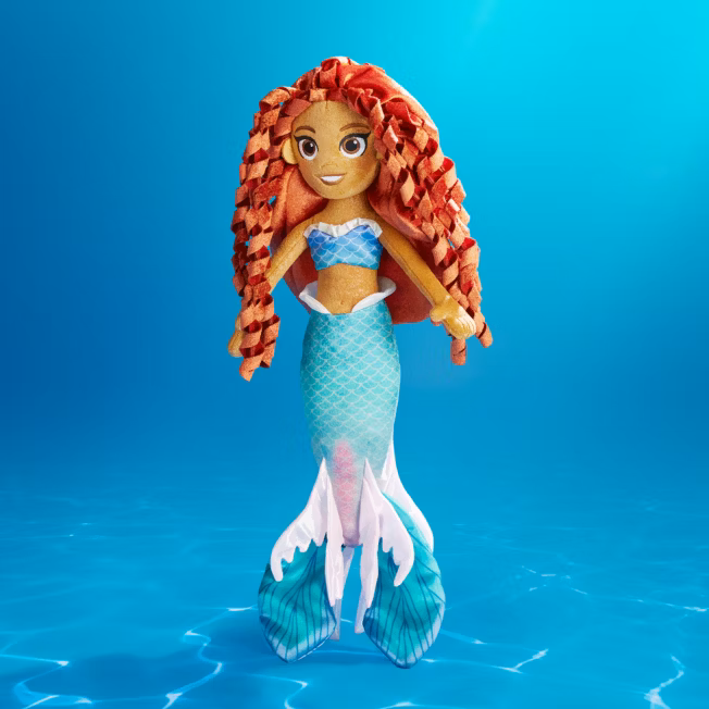 Ariel’s red ringlets cascade down to the tail of this plush little mermaid doll that’s inspired by Disney’s live action film. Pink fins adorn her soft scaled tail, which matches her top, so she’ll happily swim into your arms!