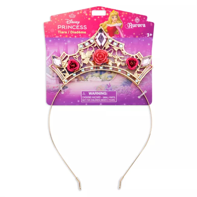 Attend the royal coronation of Princess Aurora by topping-off her ensemble with this bejewelled golden tiara. Sculpted woodland creatures, enamelled rosettes and faceted gems highlight the crowning glory of any Sleeping Beauty costume.