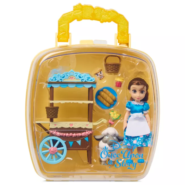 Disney’s Once Upon a Story collection celebrates the power of imagination and storytelling with beloved characters. Magical adventures await with the stories you create! Our poseable doll revisits Belle as a little girl with a big imagination–who loved to dream of traveling to places she read about in books! Complete with a Chip figure, sheep, food cart and accessories, Belle comes in a sturdy clear-window carry case with glittering handle and snap closure.