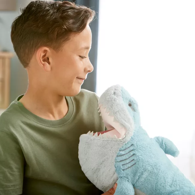 This super sweet and huggable Bruce plush is a nice shark and definitely NOT a mindless eating machine. Inspired by Disney and Pixar’s Finding Nemo, this adorable plush has a soft toothy grin and embroidered details. More than a fish, this cuddly chum is a friend.