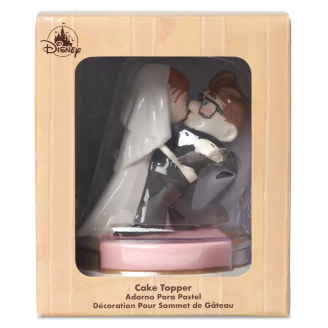 A passionate Ellie gives her bridegroom Carl a loving kiss in this ceramic cake topper. Inspired by the adventure seeking couple in Disney and Pixar’s Up, this romantic figural piece will remain a wonderful reminder of that most special of days, one you’ll cherish happily ever after.