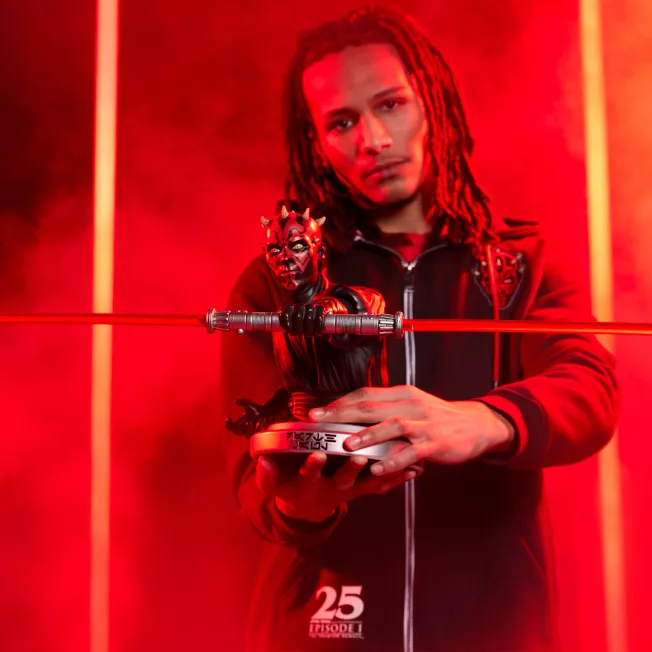 Darth Sidious’ apprentice and enforcer, Darth Maul, has cut his way through the ranks of the galactic crime syndicate Black Sun to take on the pinnacle of their organisation. Star Wars fans and collectors can display this premium bust, complete with the Sith’s signature twin-bladed LIGHTSABER, in their collection.