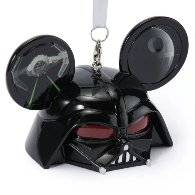 Darth Vader’s iconic helmet sprouts a pair of mouse ears on this high gloss, fully sculpted ear hat ornament with printed TIE Fighter and Death Star art. Inspired by the original classic Star Wars: A New Hope, it’s fated to cast your holiday décor decidedly to the Dark Side.