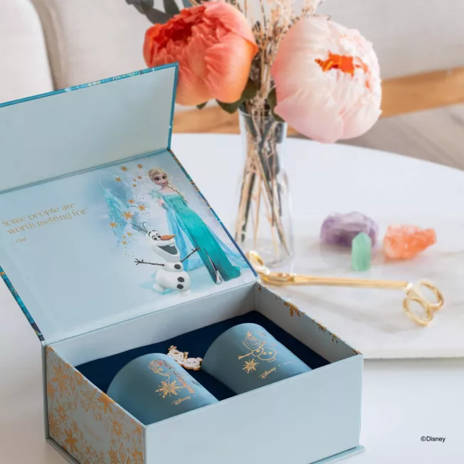 Create a space fit for a queen with this Elsa & Olaf candle set, featuring an elevating blend of white gardenia, orange flower and jasmine with a hint of fresh roses. A beautiful reminder to embrace who you are and show the world your flair.