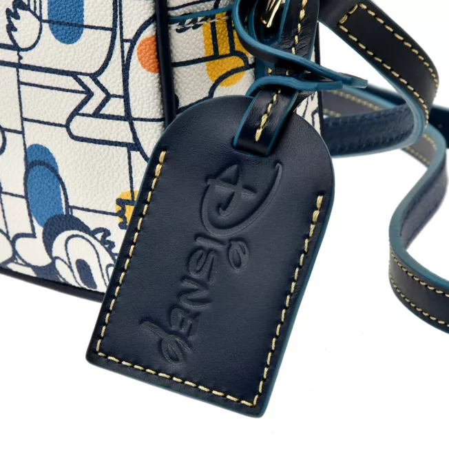 Introducing the Disney Collection from Dooney & Bourke, a renowned American leather goods brand with a heritage dating back to 1975. This stylish crossbody bag features abstract artwok of Donald Duck wearing his signature hat and bowtie, giving it the appearance of a modern art piece.