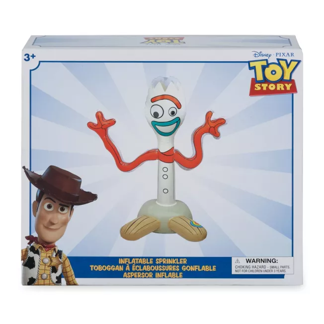 Let the water play begin with this Forky inflatable sprinkler inspired by Disney and Pixar’s Toy Story 4. Connect it to a garden hose and water sprinkles from the top of Forky’s head and both hands. On the bottom of Forky’s feet is Bonnie’s signature. Made with love, Forky is doing what he was destined to do…help create happy memories to last a lifetime.