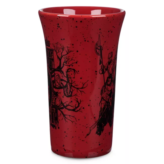 You’ll be lifting the spirits of those who inhabit the Haunted Mansion when raising this blood red mug. Inspired by the live action film popular attraction, one side shows a mirrored image of the mansions at Walt Disney World and Disneyland while the other side shows some of the ghostly guests.