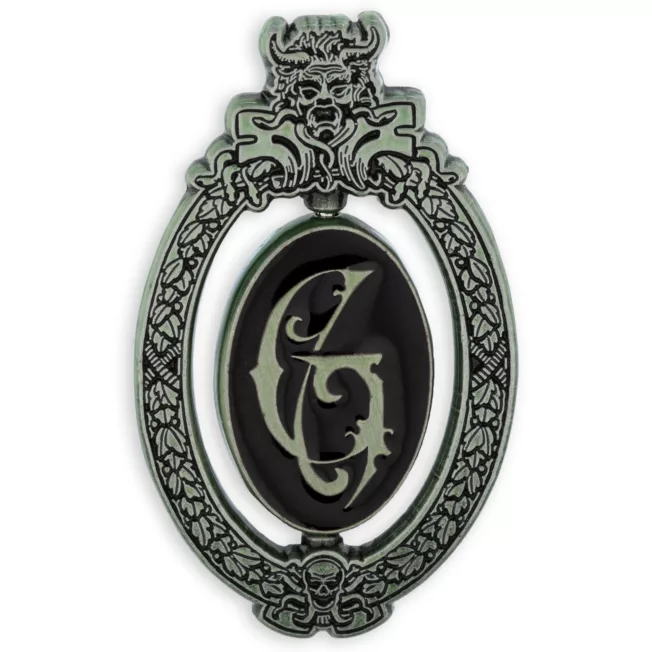 Welcome foolish mortals to our Haunted Mansion pin in the earthly form of a sculpted bas-relief plaque for the Gracey Manor gate, featuring an elaborate ”G” monogram within a frighteningly filigreed frame. It extends an invitation for you to see the 2023 live action film inspired by the classic Disney Parks attraction.