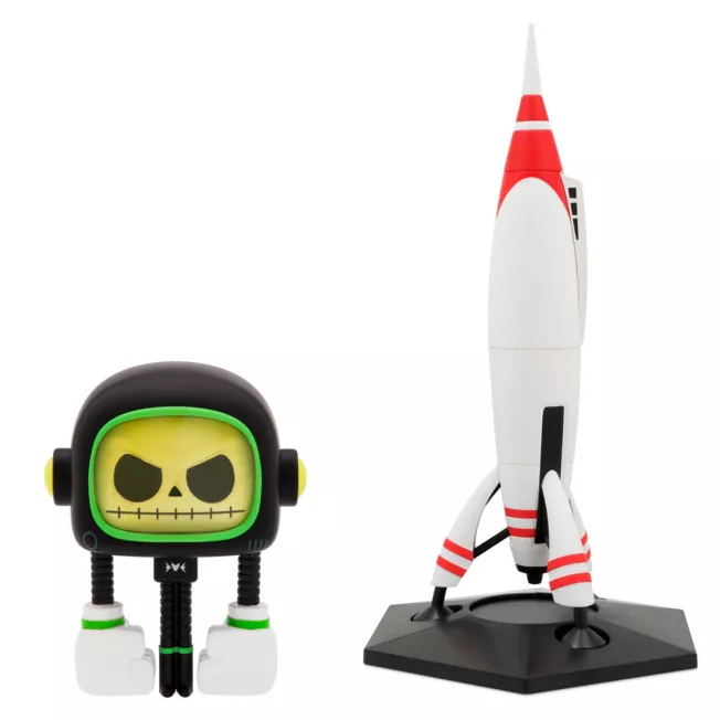 Reimagined as a spooky space traveller, the Pumpkin King is set to venture far from Halloween Town as this Jack Skellington vinyl figure by Eric Tran. Part of a set of eight collectibles depicting favourite Disney characters as super-galactic heroes, Jack just might reach that big yellow moon. Each figure comes with one piece of a miniature model rocket; collect all eight figures to get all the pieces necessary to complete the rocket.