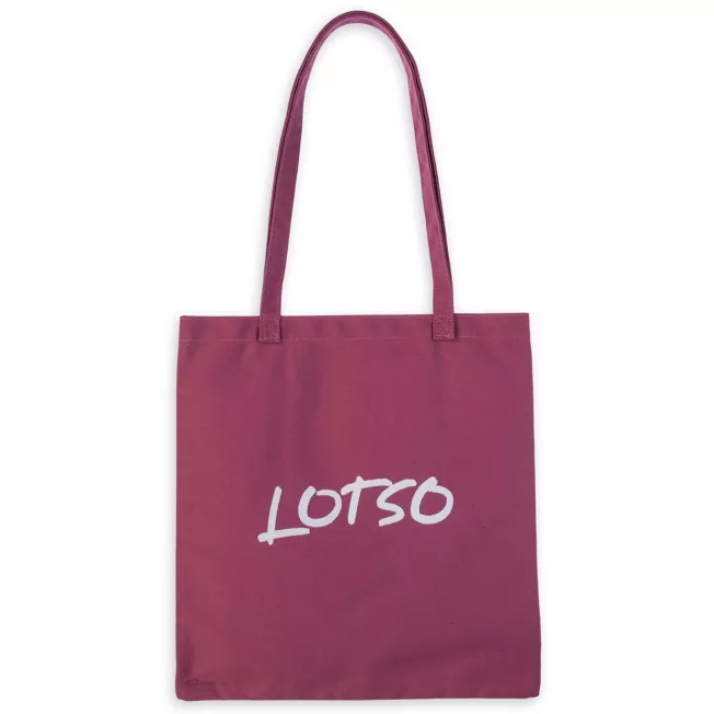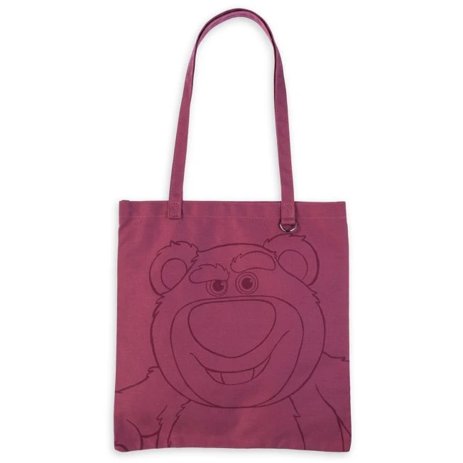 Lotso’s tote is a sturdy canvas carry-all made for spontaneous shopping trips and on-the-go convenience. Reinforced handles, interior pocket and an accessory loop make it more than your basic bag. Flocked Lotso ”signature” adds a slick touch.