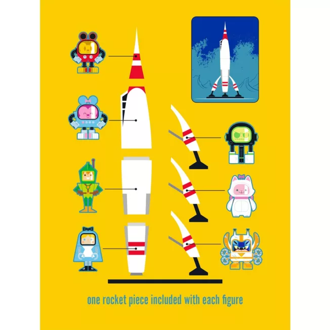 *Collect all eight vinyl figures in the series to get all the pieces necessary to build the miniature model rocket ship.