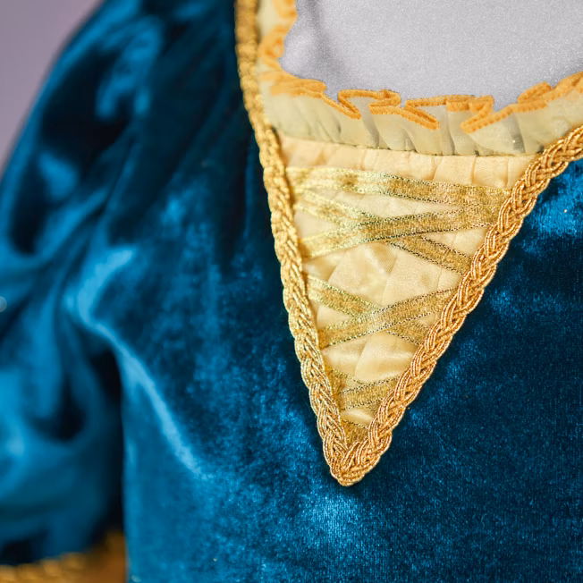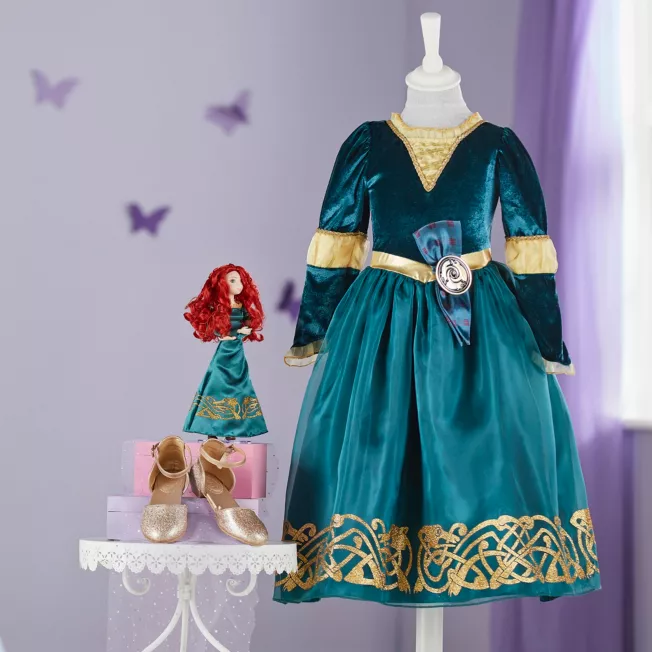 Possessing the courage to dream, young imaginations can run wild in our Merida Costume for Kids. The glamorous green gown, with its gold detailing and Celtic imagery, befits your Highland princess.