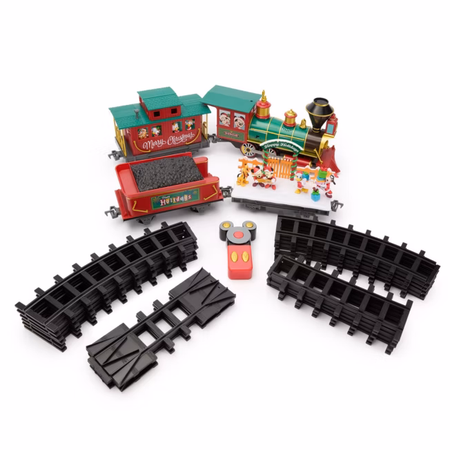 All aboard for festive fun with this holiday train set. Look! There’s Mickey and Minnie Mouse pictured on the ”Deck the Castle” locomotive. This battery-operated remote control train set also includes three other train cars and it plays music and character phrases. Festive figures of Mickey and Friends make this the merriest Holiday Express this side of the North Pole. Featuring a circular track, it is sure to inspire holiday memories that go straight to your heart.