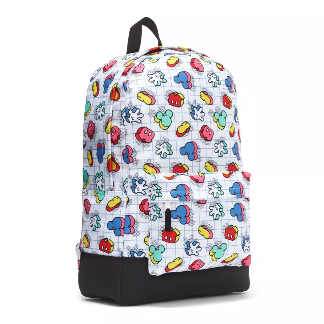 Mickey’s shorts, gloves, boots and head are featured in the colourful all-over print on this backpack. Set against the grid background, the dimensional design adds character to this spacious carryall. The lined interior features a padded compartment for a tablet and there’s an exterior zip pocket for those essentials you want ready access to.