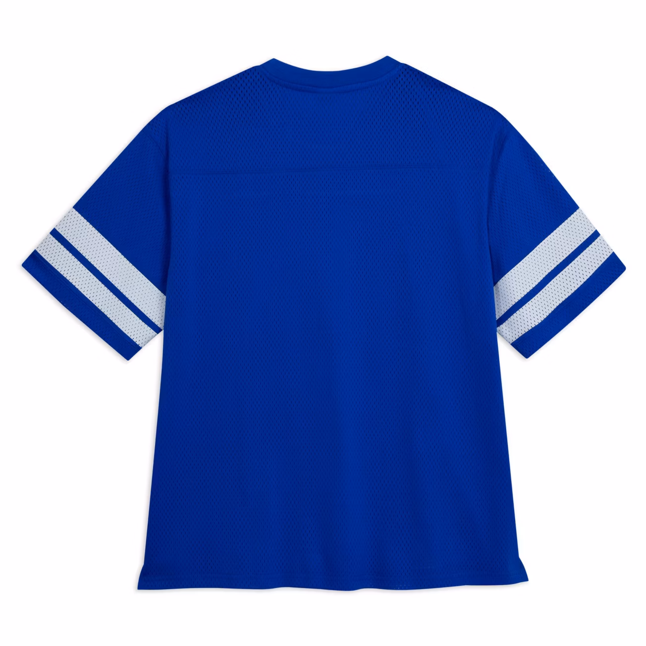 Tackle the fashion competition head-on in this fan-favourite mesh football jersey with yoke, appliqué sleeve stripes, vintage Mickey Mouse art and classic Disneyland logo. Boxy fit lends a contemporary touch. Get ready to play in The Happiest Game on Earth!