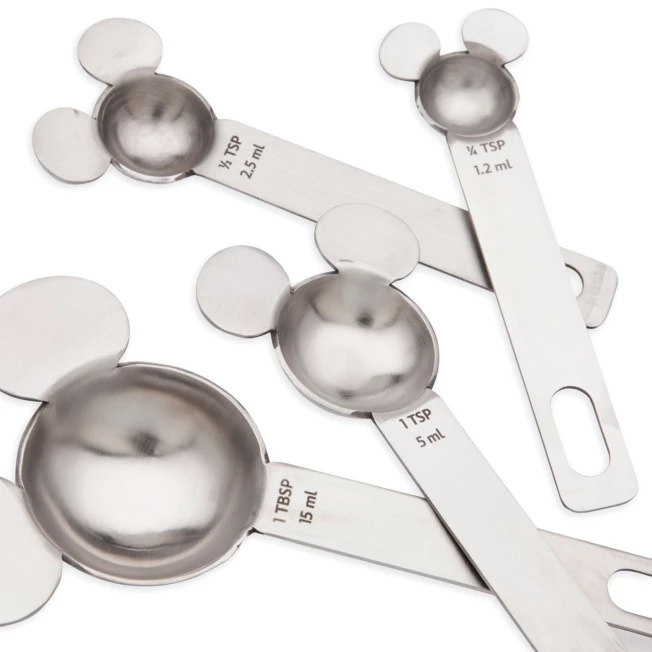 A spoonful of sugar is even more delightful when using these Mickey Mouse icon measuring spoons. Made of stainless steel, the set of four spoons is held together on a metal ring for extra ease of use. With adorable Mickey ears at the top and imperial and metric measurements etched on each spoon, they’re as cute as they are clever.