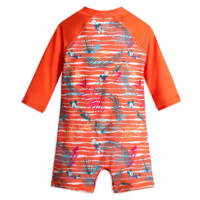Baby will enjoy splashing about with Mickey when they’re wearing this rash guard. The all-over fun pattern on this one-piece design shows the many ways in which Mickey entertains himself when on vacation at the seaside. With UPF 50+ built-in UV protection, it’ll keep them safer in the sun.