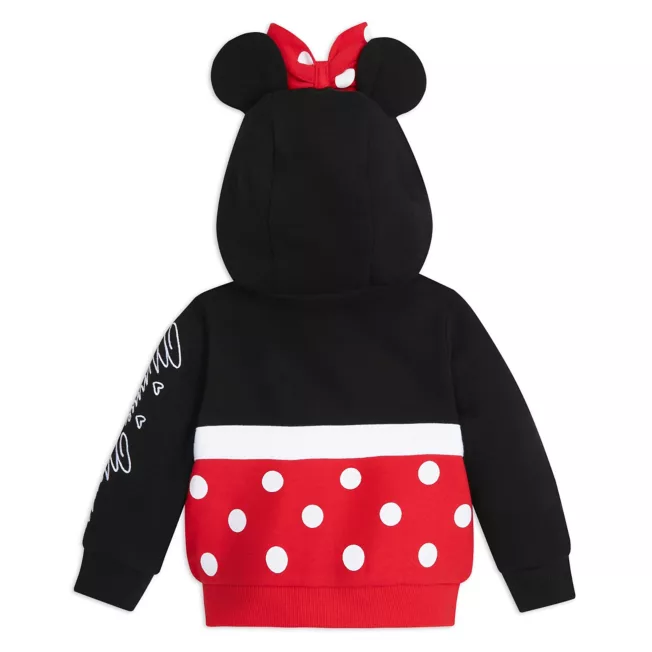 Your little one can show off their natural born sense of style when they wear this Minnie Mouse zip hoodie. Taking its design inspiration from Minnie’s signature costume, complete with polka dot section, it includes Minnie’s name embroidered on the sleeve. Its fleece fabrication interior and jersey lined hood with 3D ears are sure to make it a warm favourite with baby.