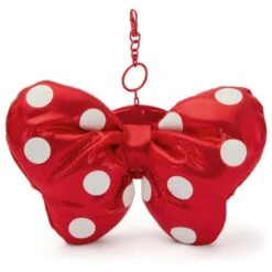 Turn heads with this plush Minnie Mouse Ribbon Plush Keychain from Disney Store Japan, featuring shiny red-and-white polka dots and her iconic signature. Includes a handy mirror and red carabiner—perfect for adding charm to your bag or daily outings!