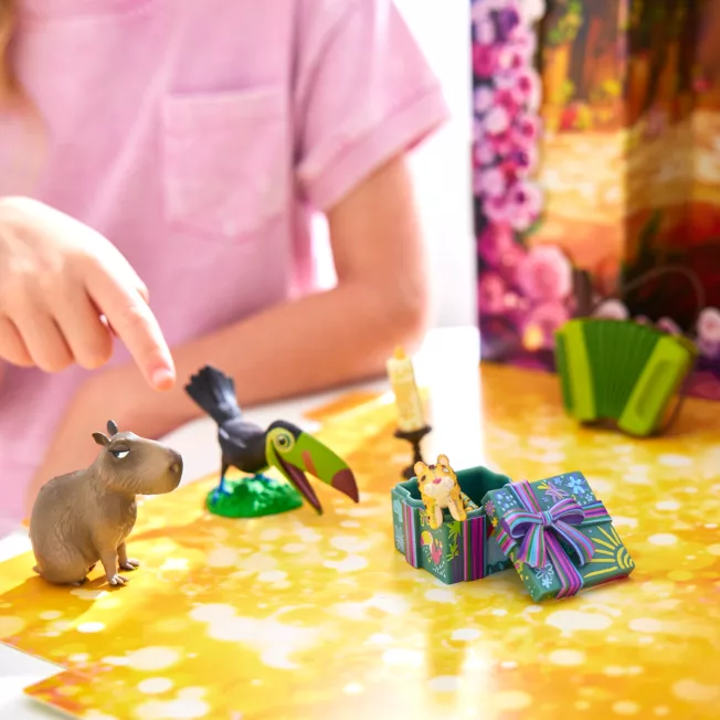 - Accessories include accordion, gift box, candle, toy jaguar, plus Pico and Chispi figures