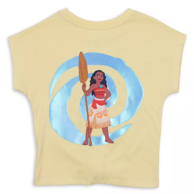 Find your light with this vibrant Moana fashion tee with a printed portrait of the island princess. The tie-front knot adds a stylish touch for your next adventure.
