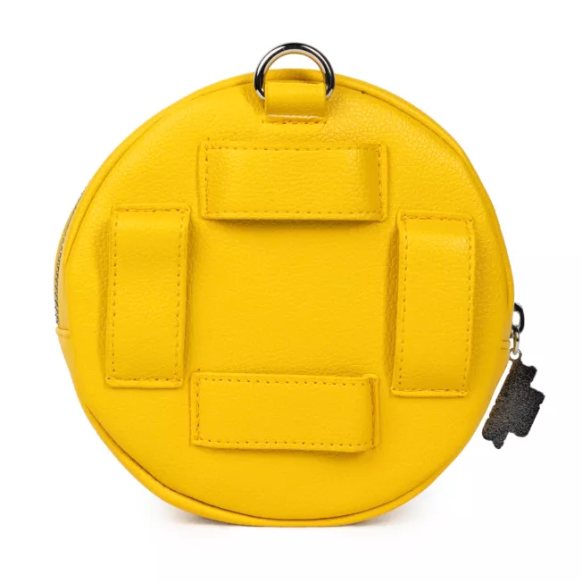 - Yellow circular shaped bag inspired by the Luxo Ball, complete with its blue stripe and red star