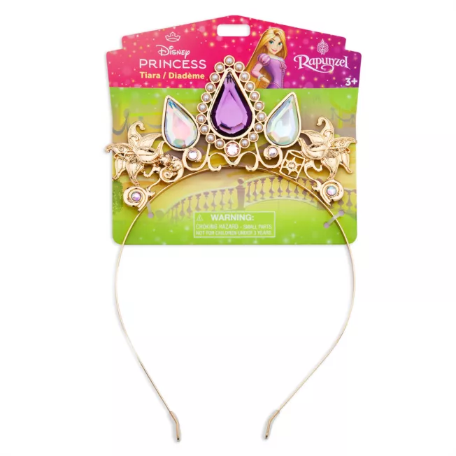Attend a royal coronation for your princess-to-be by topping the ensemble with this bejewelled tiara. Sculpted golden Sundrop Flowers, faceted gems, faux pearls and filigreed petals highlight the crowning glory of any Rapunzel costume.