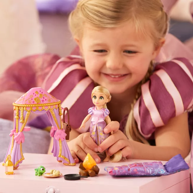 Disney’s Once Upon a Story collection celebrates the power of imagination and storytelling with beloved characters. Magical adventures await with the stories you create! Our poseable doll revisits Rapunzel as a little girl with a big imagination–who dared to dream of adventures outside her tower! Complete with a Pascal figure, canopy, bedroll, and accessories, Rapunzel comes in a sturdy clear-window carry case with glittering handle and snap closure.