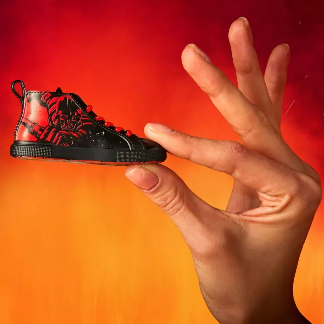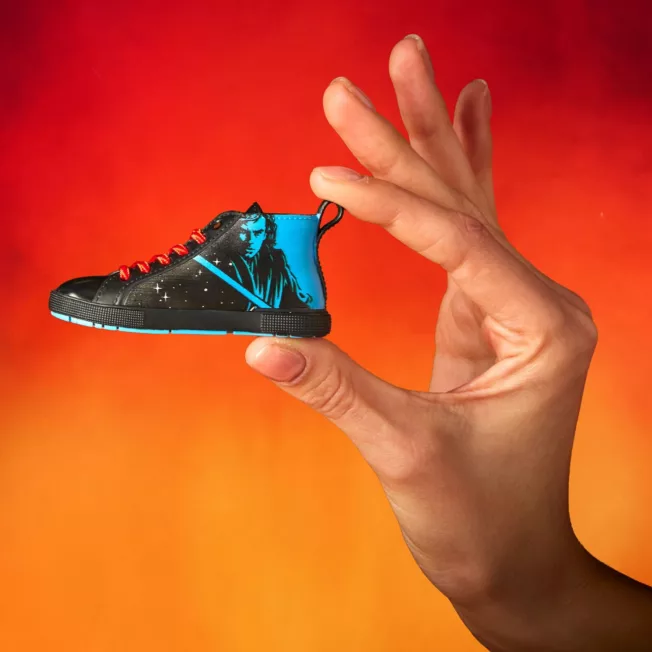 Poised at the intersection of the dark and light side, this Disney Lacers limited edition vinyl collectible figure celebrates the 20th anniversary of Star Wars: Revenge of the Sith. Featuring dramatic all-over art, including Darth Vader in red and Anakin Skywalker in blue on opposite sides of the miniature shoe, it illustrates the pull of the Force. You’re sure to find this special collectible irresistible.