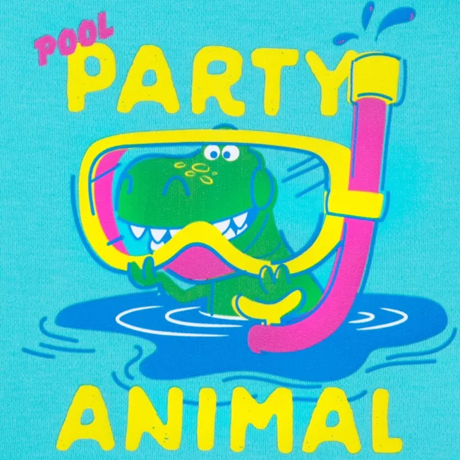 The normally reticent Rex has let his scales down and put his snorkel up and become a ”Pool Party Animal” on this fun infant bodysuit. With its pieced design featuring different coloured sleeves and trim, this bright and bold Toy Story bodysuit will brighten up baby’s day!