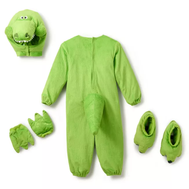 Roar! Your favourite little trick-or-treater will have a dino-mite Halloween with this adorable Rex costume featuring sound effects. The authentic plush costume includes a padded hood, bodysuit with embossed details, detachable tail, and coverings for their hands and shoes. Fully lined for comfort, it also features sound effects including film-accurate phrases that help bring the adorable T-Rex to life.
