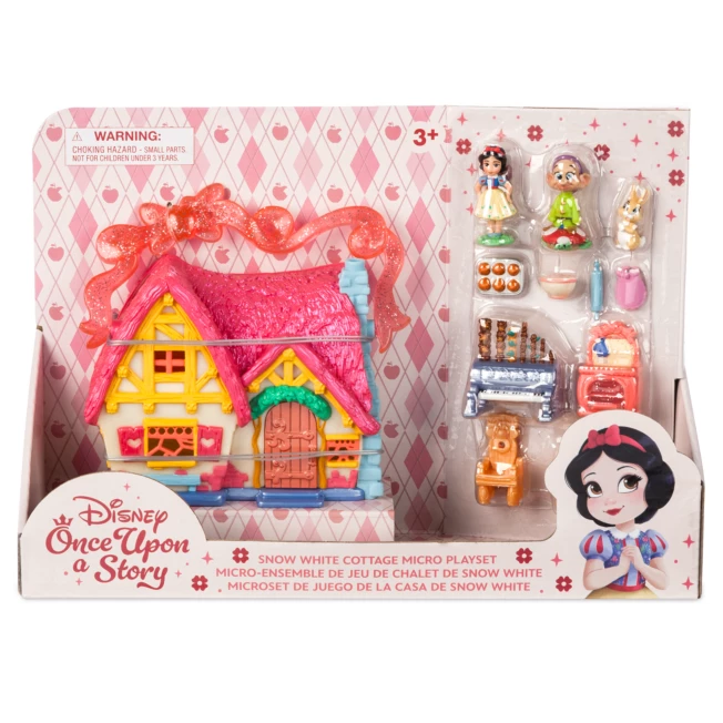 The Disney Once Upon a Story collection celebrates the power of imagination and storytelling with beloved fairytale friends. Hours of magical adventures await with the stories you create! Our fully sculpted miniature figurines come with a highly detailed cottage playset, plus film-authentic furniture and accessories. When not in use, the playset converts to a carry-all with glittering handle, so playtime and storage are always a cinch! Snow White’s Cottage is an enchanting place to dream the day away!