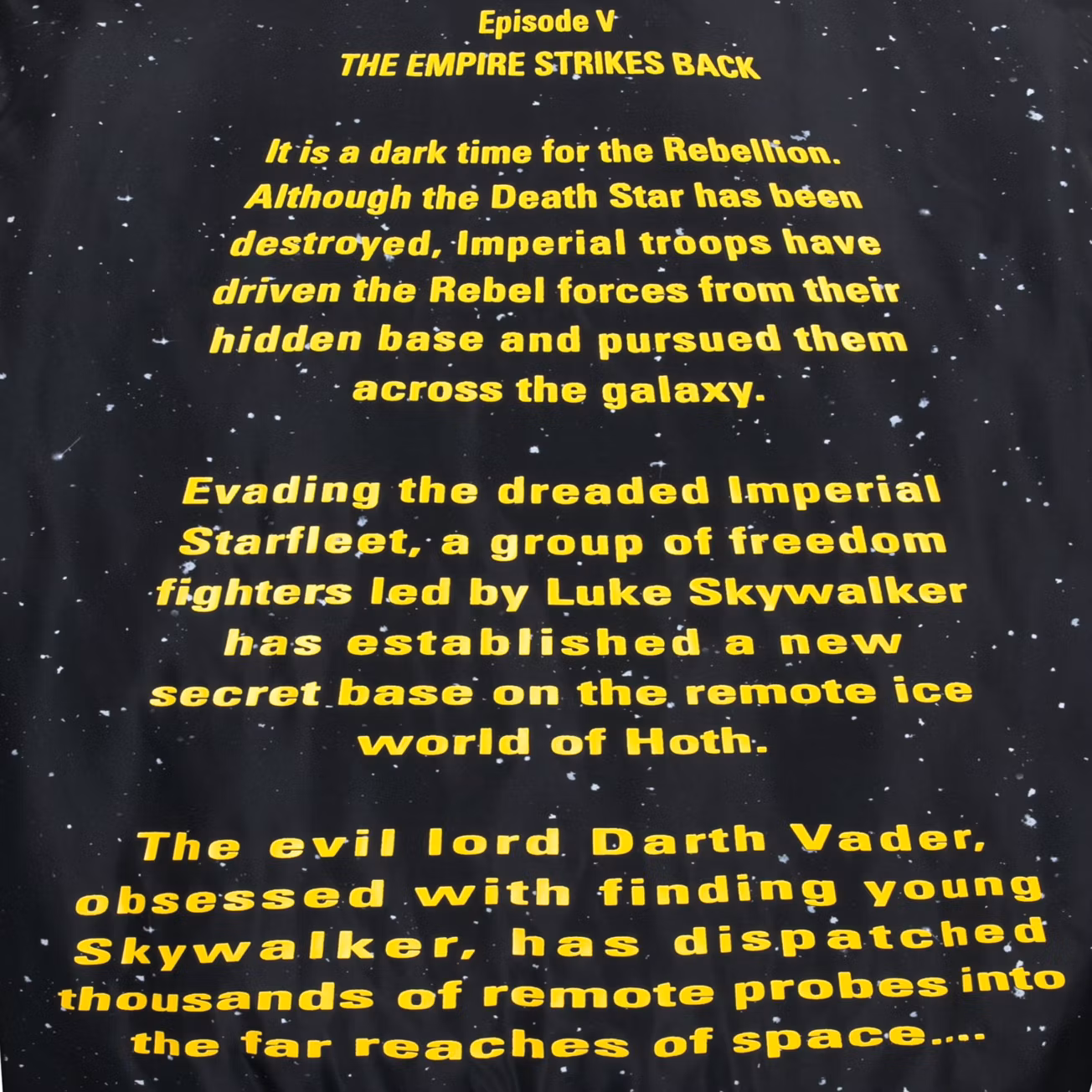 - Star Wars Episode V: The Empire Strikes Back movie scroll printed on back