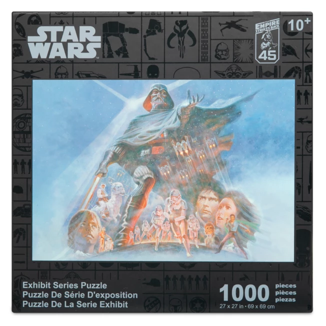 Piece together great memories of Star Wars: The Empire Strikes Back with this special edition puzzle celebrating the movie’s 45th anniversary. The dramatic design of this 1,000-piece jigsaw is based on original poster artwork for Episode V and features Darth Vader looming over the cast of characters that include Han Solo, Princess Leia, Luke Skywalker, and Chewbacca.