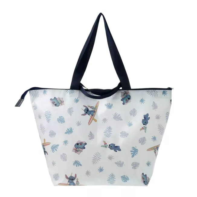 Relax in style with the Stitch Day Shopping Bag, featuring adorable scenes of Stitch and Scrump amid tropical leaves. Spacious, zippered, and versatile with dual handles—it’s perfect for any outing, big or small.