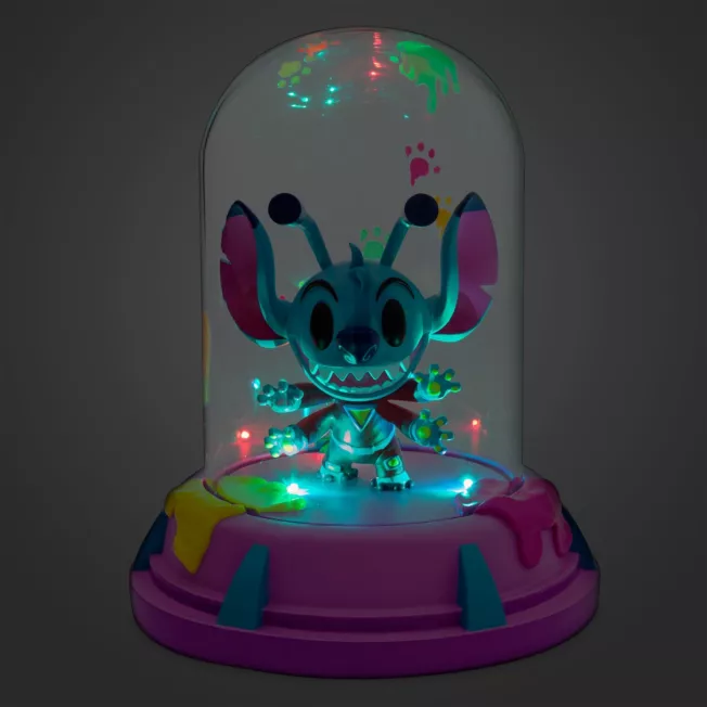 Space invader Stitch gives your home or office an alien encounter with this fully sculpted light-up figure designed by Disney artist Lewis Whitman for his Madly Mischievous collection. Posed under a glass dome, Stitch is spotlighted by LEDs in the base that change colours together and separately for a dazzling light show to make Lilo proud.