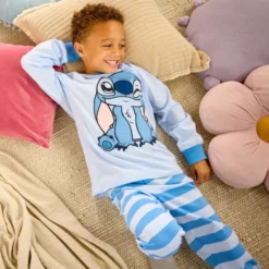 Add a little mischief and a lot of comfort to their bedtime routine with this adorable Stitch pyjamas set. Featuring a playful print of Stitch on the top, this set brings the charm of everyone’s favourite alien experiment to cosy nights and lazy mornings. The striped bottoms add a fun, classic touch – complete with an appliqued Scrump detail for an extra bit of personality and texture.