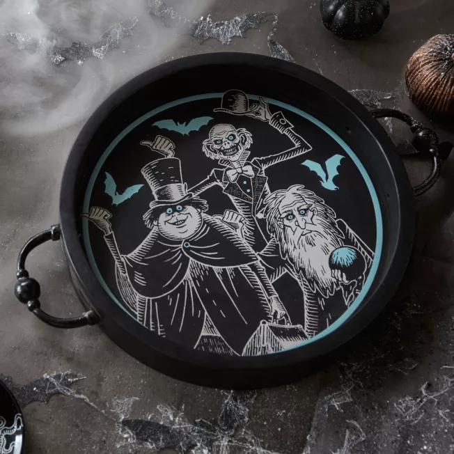 The three Hitchhiking Ghosts are ready to serve up some horrors d’oeuvres with this tray. Inspired by the Disney Parks’ The Haunted Mansion attraction, the solid mango wood tray features Ezra, Phineas, and Gus with some of their batty friends. If the sight of the spectral trio makes you nervous, the frightfully cool metal handles will help you get a grip!