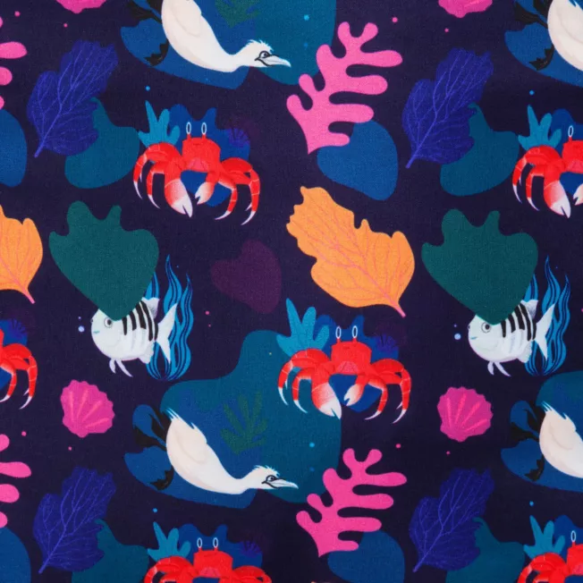 - Lining features all over print with Sebastian and Scuttle