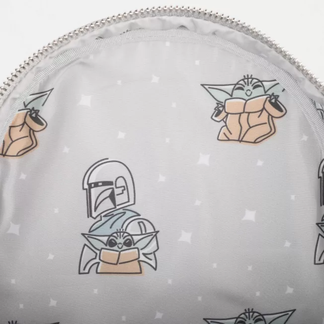 - Grogu and The Mandalorian with stars allover print in lining of the backpack