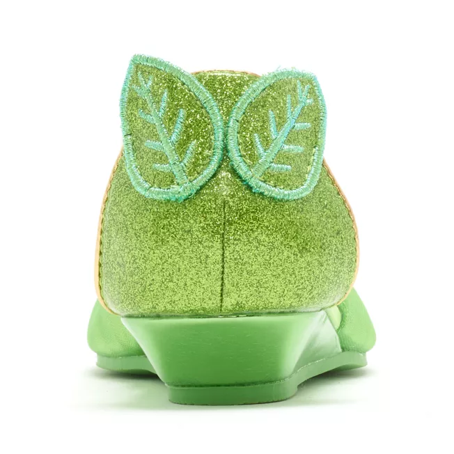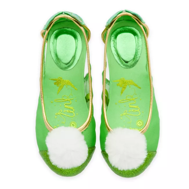 Fluffy white pom-poms top the toes of these glittering green shoes with leafy metallic trims and satin footbed. Perfect for your little pixie’s next flight, magic is made when paired with our Tinker Bell costume.