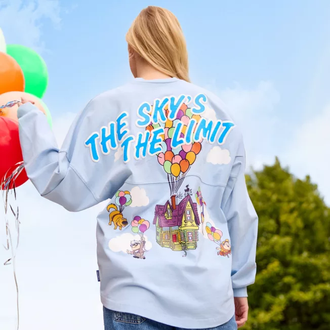 Adventure is out there – and so is cosy style! This pastel Up Spirit Jersey features Carl and Russell floating sky-high on the front, while the back bursts with colour as their house soars above the clouds beneath the bold motto: ‘The Sky’s The Limit!’ With ‘The Wilderness must be explored!’ on the front, it’s the perfect pick for dreamers with their heads in the clouds and hearts full of wonder.