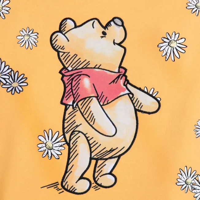 Join Winnie the Pooh for a carefree day in the Hundred Acre Wood of your own imagination while wearing this pullover sweatshirt with charming all-over floral pattern, dropped shoulders and oversize fit. The classic-style Pooh illustration on front features an embroidered border.